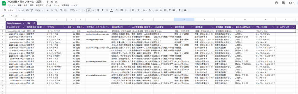 このツールは、皆さまがお持ちのGoogleアカウント上で動作します。入力された利用者さんの大切な個人情報は、すべて皆さま自身のGoogleドライブの中に保存されます。私たちがその情報にアクセスすることは一切ありませんし、情報の管理責任を負うこともできません。Googleの個人アカウントで利用は出来ますが、セキュリティは弱いのでセキュリティ強化を望むのであればGoogle Workspaceをご利用することをお勧めします。