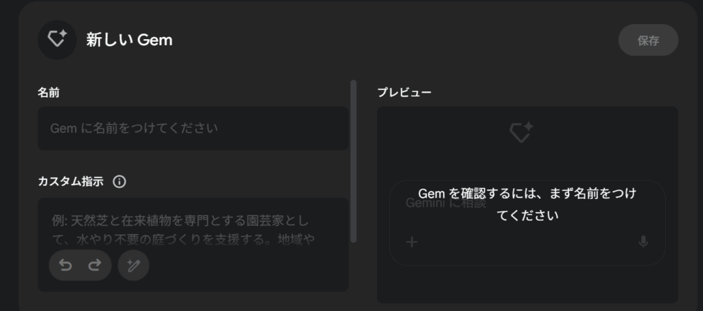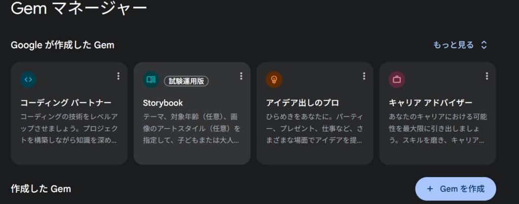 2.クリックすると、Gemマネージャーが開くので、右下にある「+Gemを作成」ボタンを押す