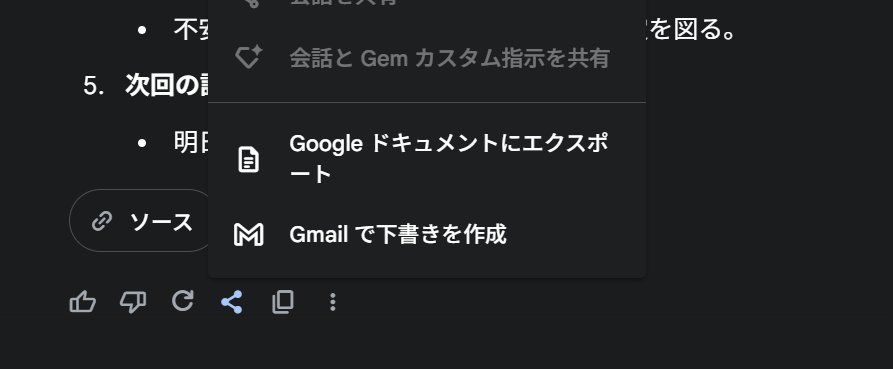 14.生成された内容をGoo;gleドキュメントにエクスポートすれば、記録が残ります
