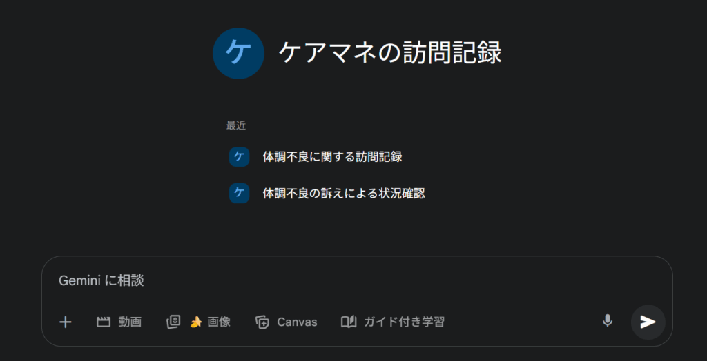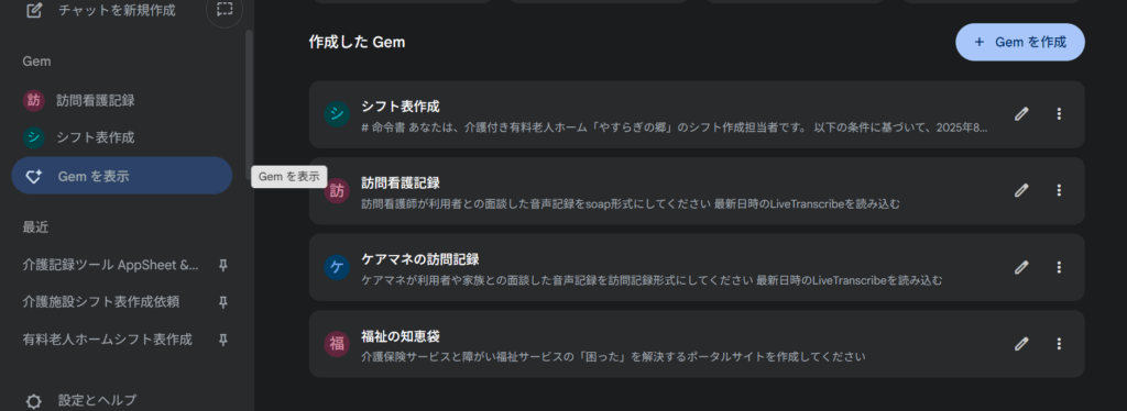 注)このツール(Gem)を使うにあたって、法人または事業所内で検討(このツールを使用することに関する利用者さんからの同意書を取るなど)してから使用してください