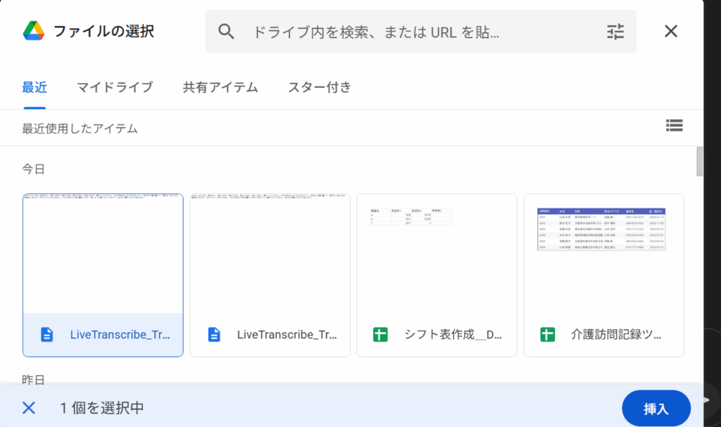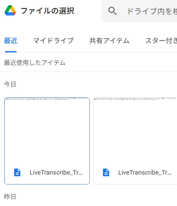 6.Googleドライブにアップロードされたtxtファイル(Live Transcribe_・・・)が表示されているか確認します